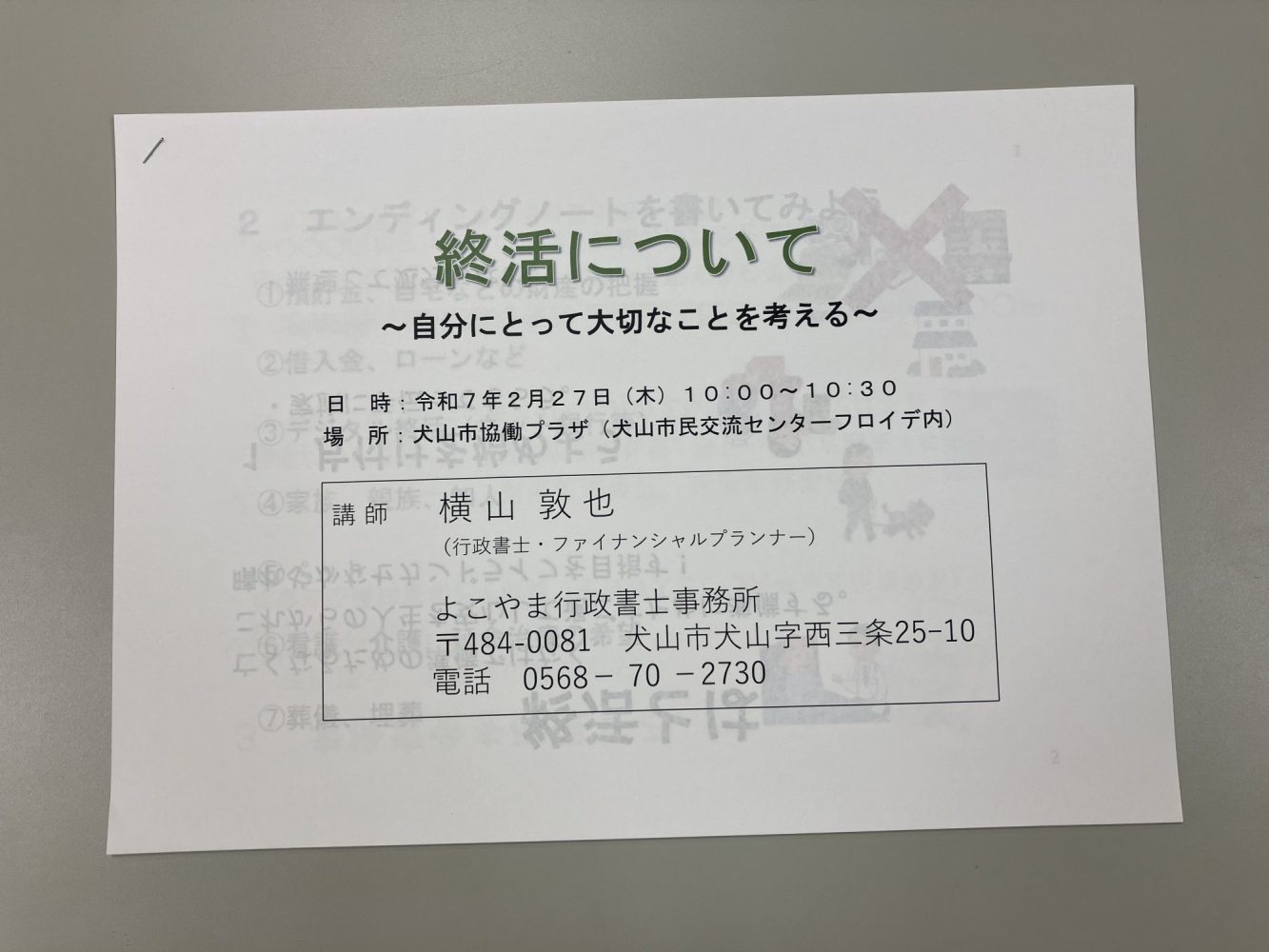 2月27日(木)に終活を必要とする方向けではなく、社会福祉協議会や包括支援センター、ケアマネージャーなど終活の相談を受けるかもしれない方向けにお話しをしました。