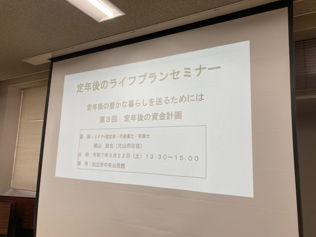 3月22日(土)、今回の内容は終活全般ではなく、豊かな老後に向けた資金計画について説明しました。